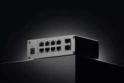TSW210 oferuje 8 portów Ethernet oraz 2 gniazda SFP, zapewniając szybkie i stabilne połączenia dla różnych urządzeń.