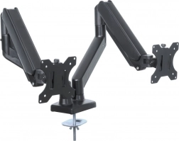 Podwójny uchwyt do monitorów ART UM-116 jest przeznaczony dla ekranów o przekątnej od 13 do 32 cali i wadze od 2 do 9 kg. Dzięki sprężynie gazowej możesz regulować położenie monitorów z łatwością jednym palcem, a uchwyt pozostaje stabilny na miejscu, również podczas obracania ekranu dzięki funkcji PIVOT z możliwością obrotu o 360 stopni.