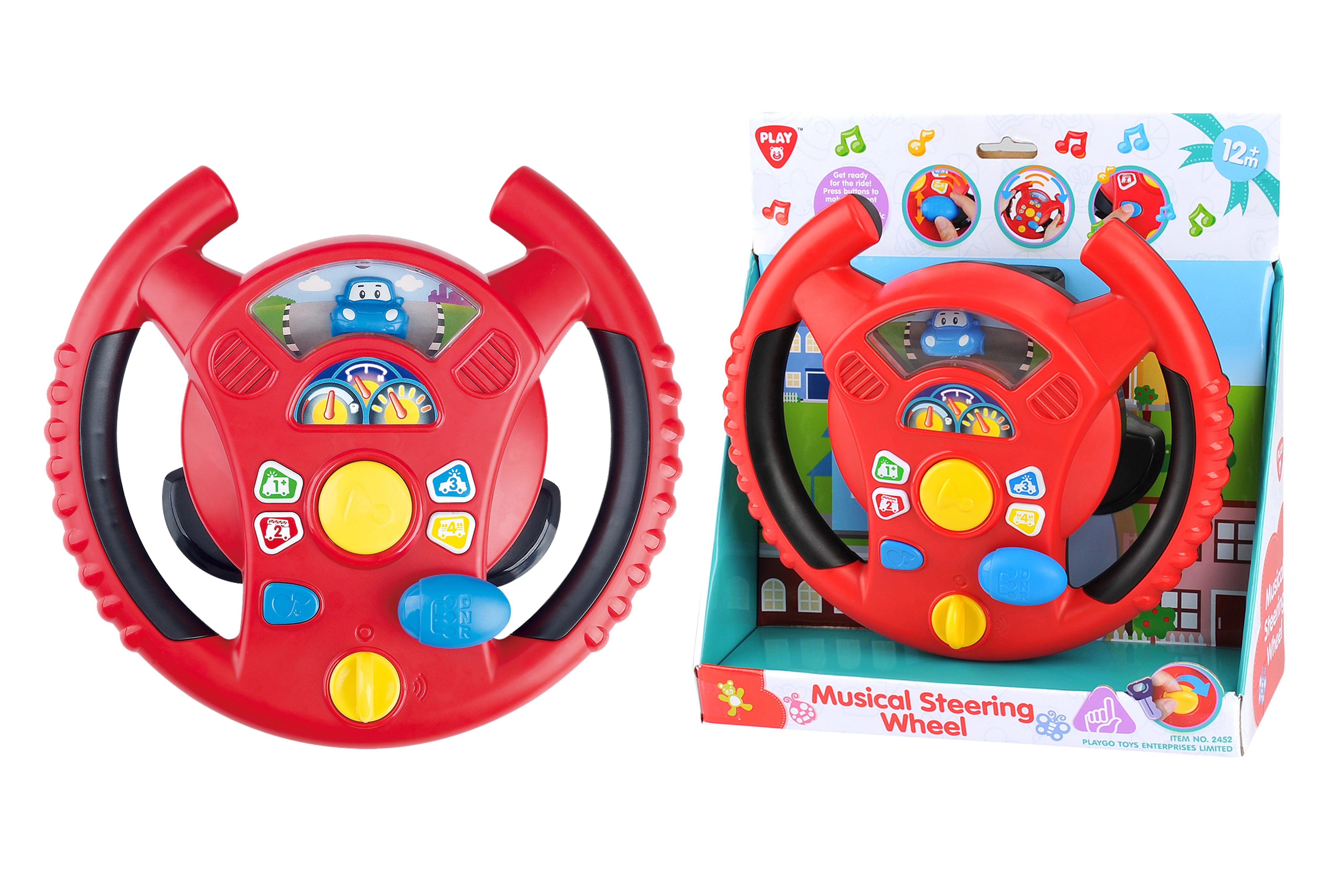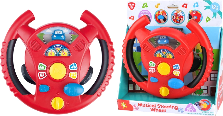 Interaktywna kierownica Playgo zapewnia dzieciom świetną zabawę w prowadzenie w mini miasteczku. Obrotowy przełącznik na spodzie kierownicy służy do włączania, pośrodku znajduje się klakson, po prawej dźwignia zmiany biegów do odgłosów jazdy, a na obręczy kierownicy małe przyciski z tonami i melodiami. Dzieci pokochają realistyczne efekty przypominające prawdziwy samochód, jednocześnie rozwijając koordynację i wyobraźnię.