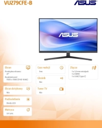 ASUS VU279CFE łączy elegancki, bezramkowy design z praktycznymi funkcjami dla codziennej produktywności. Panel IPS gwarantuje precyzyjne kolory i świetną czytelność, a odświeżanie 100 Hz z 1 ms MPRT poprawia płynność ruchu podczas pracy w przeglądarce, w aplikacjach biurowych oraz przy lekkim graniu.