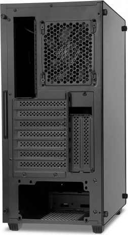 Zasilacz umieszczono w dolnym tunelu, który oddziela go od pozostałych komponentów dla czystszego przepływu powietrza i estetycznego wnętrza. Magnetyczny filtr przeciwkurzowy umożliwia szybką konserwację bez narzędzi, a górny panel I/O udostępnia porty USB, złącza audio, przyciski Power/Reset oraz przełącznik podświetlenia LED.