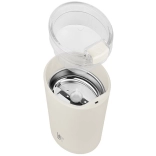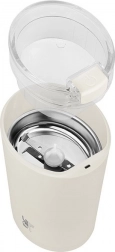 Młynek jest chroniony przed uruchomieniem bez nałożonej pokrywy, co zapewnia maksymalne bezpieczeństwo podczas użytkowania.