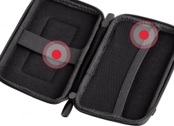 To solidne etui wyposażono w specjalną gumkę, która stabilnie utrzymuje dysk na miejscu. Oprócz samego dysku zmieści się tu także drobne akcesorium, takie jak pamięć USB, kabel danych lub karty pamięci. Dzięki elastycznej, siateczkowej kieszeni wszystko jest dobrze uporządkowane i łatwo dostępne. Dla większej wygody etui zamykane jest dwukierunkowym zamkiem błyskawicznym.