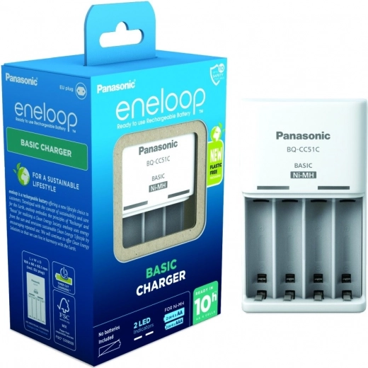 Ładowarka Eneloop basic to niezawodne rozwiązanie do codziennego ładowania akumulatorów do klawiatur, zabawek czy urządzeń domowych. Potrafi jednocześnie ładować 2 lub 4 sztuki w rozmiarze AA lub AAA, przy czym każdy akumulator jest kontrolowany oddzielnie. Po zakończeniu procesu dla ochrony ogniw automatycznie się wyłącza.