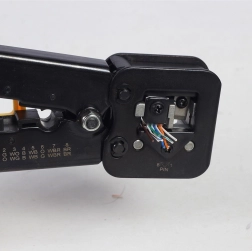 To narzędzie do zaciskania zostało zaprojektowane do użytku profesjonalnego oraz dla majsterkowiczów. Umożliwia zaciskanie, cięcie i ściąganie izolacji przewodów w jednym ruchu. Dzięki wygodnemu ergonomicznemu uchwytowi korzystanie z narzędzia jest proste i efektywne. Jest kompatybilne z większością przelotowych złączy modularnych i odpowiednie dla standardowych złączy 8P8C, 6P6C i 6P4C.