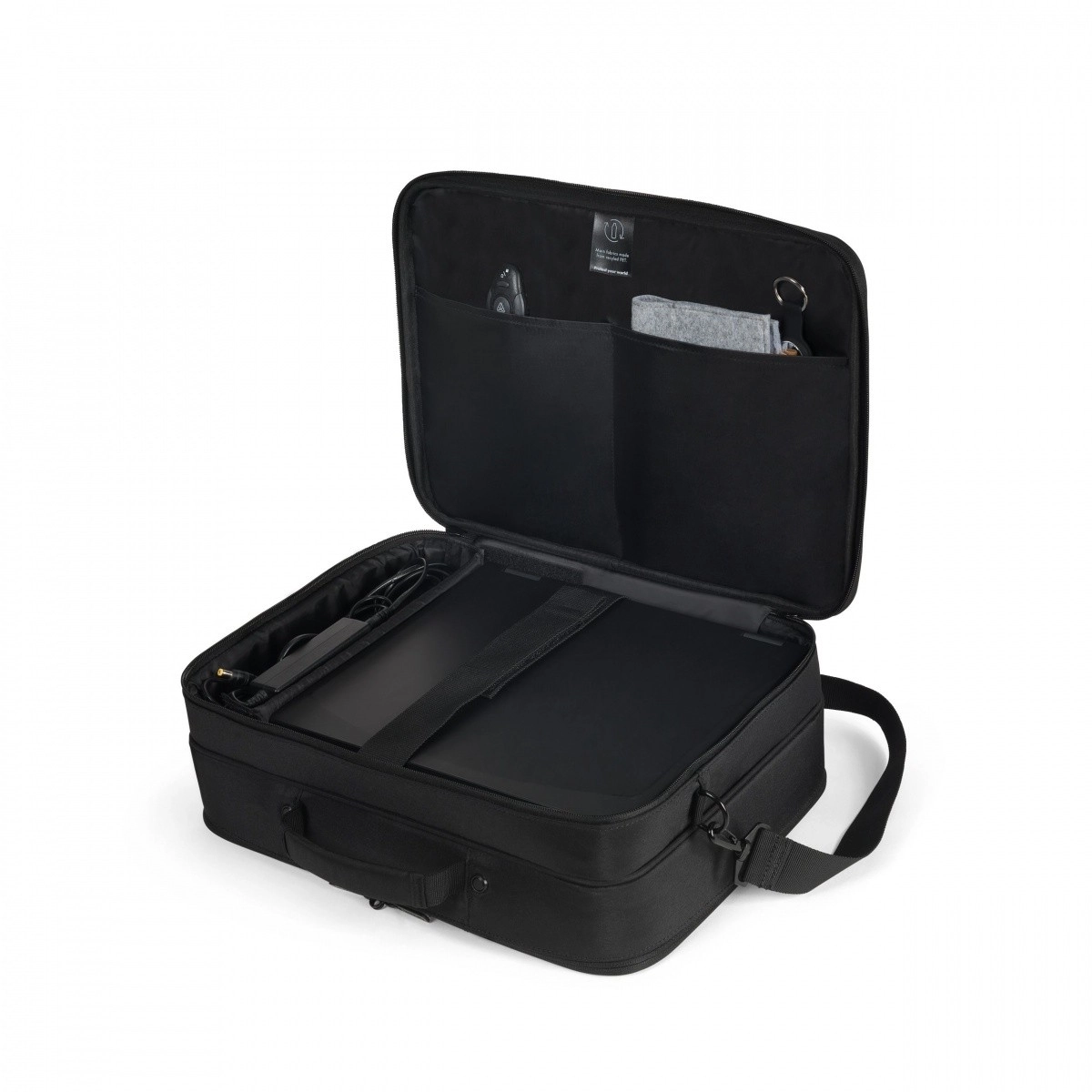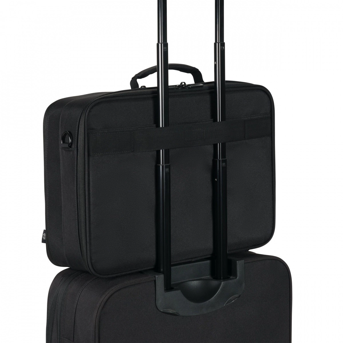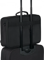 Ta dobrze zaprojektowana torba zawiera wyściełaną przegrodę na drukarkę i projektor, a także zamykaną i wyściełaną komorę na laptopa ze wzmocnioną ramą dla maksymalnej ochrony. Przednia kieszeń została specjalnie zaprojektowana na akcesoria mobilne, a kieszeń na zamek oferuje miejsce na zasilacz i kabel. Ukryta przegroda na lokalizator GPS pozwala mieć torbę stale pod kontrolą, a kieszeń na zamek z blokadą RFID chroni dane osobowe przed nieuprawnionym dostępem. Ważne dokumenty można bezpiecznie przechować w tylnej kieszeni na dokumenty, a wyściełany pasek na ramię zapewnia wygodne noszenie. Pas do mocowania na walizce ułatwia przytwierdzenie torby do bagażu. Całość uzupełnia wodoodporny materiał, który niezawodnie chroni zawartość przed warunkami atmosferycznymi.