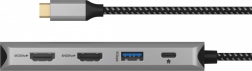 - 2× HDMI do 4K/60 Hz (w zależności od możliwości hosta i układu monitorów)
