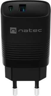 Natec Ribera GaN ładowarka USB 30 W, 1x USB-A, 1x USB-C, czarna