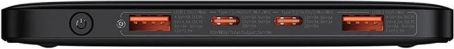 Dwa USB‑C i dwa USB‑A umożliwiają ładowanie nawet czterech urządzeń jednocześnie. Technologia Baseus BPS II inteligentnie rozdziela moc, a zestaw zabezpieczeń chroni przed przeładowaniem, przegrzaniem oraz zwarciem.