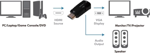 Niezawodny konwerter z HDMI na VGA do podłączenia nowoczesnych urządzeń do starszych monitorów i projektorów. Obsługuje rozdzielczość do Full HD 1080p, a w zestawie znajduje się wyjście audio 3,5 mm do przesyłu dźwięku.