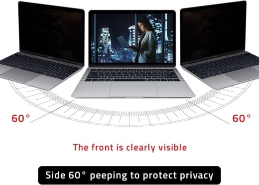 Zaawansowane mikrożaluzje umożliwiają czytelny obraz jedynie użytkownikowi przed monitorem, przy czym już przy lekkim bocznym podglądzie treść jest rozmyta, a przy ok. 30° wyraźnie przyciemniona. Filtr ponadto redukuje szkodliwe niebieskie światło i posiada warstwę antyrefleksyjną, zapewniając komfortową pracę bez zmęczenia oczu nawet w jasno oświetlonych pomieszczeniach.