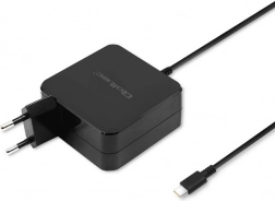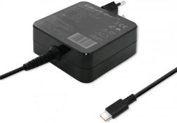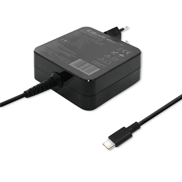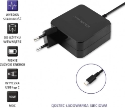 Ładowarka sieciowa marki Qoltec o mocy 90 W. Posiada wbudowany przewód z złączem USB typu C.