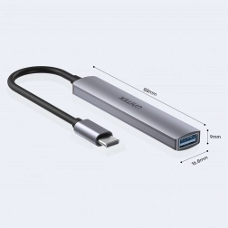 Urządzenie działa bez instalacji — wystarczy podłączyć do USB‑C i można pracować. Metalowa obudowa jest wytrzymała i elegancka, a kompaktowe wymiary (ok. 8,8 × 1,6 × 0,8 cm) mieszczą się w każdej torbie. Hub rozszerza łączność nie tylko w komputerze, ale także w tablecie i smartfonie, gdzie łatwo stworzysz mobilne stanowisko pracy.