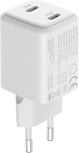 Kompaktowa i wydajna ładowarka VOLT GaN z podwójnym wyjściem USB-C o maksymalnej mocy 35 W. Zapewnia szybkie i bezpieczne ładowanie szerokiej gamy urządzeń mobilnych, w tym telefonów, tabletów i innej elektroniki.