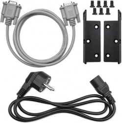 Rozszerzenie SNMP, port RS-232 z kablem oraz akcesoria montażowe umożliwiają szybkie wdrożenie, zdalne zarządzanie i bezpieczne mocowanie w szafie rack.