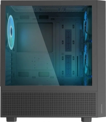 Panel boczny z hartowanego szkła na zatrzaskach przyspiesza dostęp do komponentów bez konieczności odkręcania śrub. Wnętrze mieści chłodzenie CPU do 175 mm oraz kartę graficzną do 330 mm (do 360 mm po demontażu przednich wentylatorów). Dla magazynu danych przewidziano kosz w tunelu zasilacza na 2 dyski (SSD/HDD) oraz dodatkowe miejsca M.2 zależnie od płyty głównej.