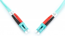 Niezawodny patchcord do sieci światłowodowej z wtykami LC–LC i włóknem MM 50/125 klasy OM3 do szybkich transmisji. Oferuje połączenie duplex, wykonanie LSOH o niskiej emisji dymu i bez halogenów, precyzyjne ceramiczne ferrule oraz długość 1 m w turkusowym kolorze dla łatwej identyfikacji.