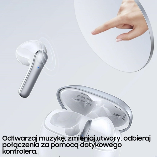 Sterowanie jest intuicyjne dzięki gestom dotykowym, a dla maksymalnej wygody słuchawki wspierają ładowanie bezprzewodowe zarówno samych pchełek, jak i etui. Wbudowane podwójne mikrofony dbają o wyraźne rozmowy w jakości HD, a etui ładujące o pojemności 300 mAh wydłuża czas słuchania na cały dzień.