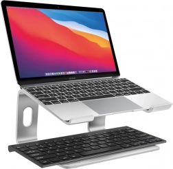 Srebrny stojak na laptop AluBench oferuje wygodną pracę dzięki ergonomicznej konstrukcji. Umożliwia jednoczesną pracę z zewnętrznym monitorem, zwiększając efektywność przy korzystaniu z wielu aplikacji. Ustawienie laptopa na podwyższonym stojaku zapewnia lepsze odprowadzanie ciepła i odciąża system chłodzenia urządzenia.