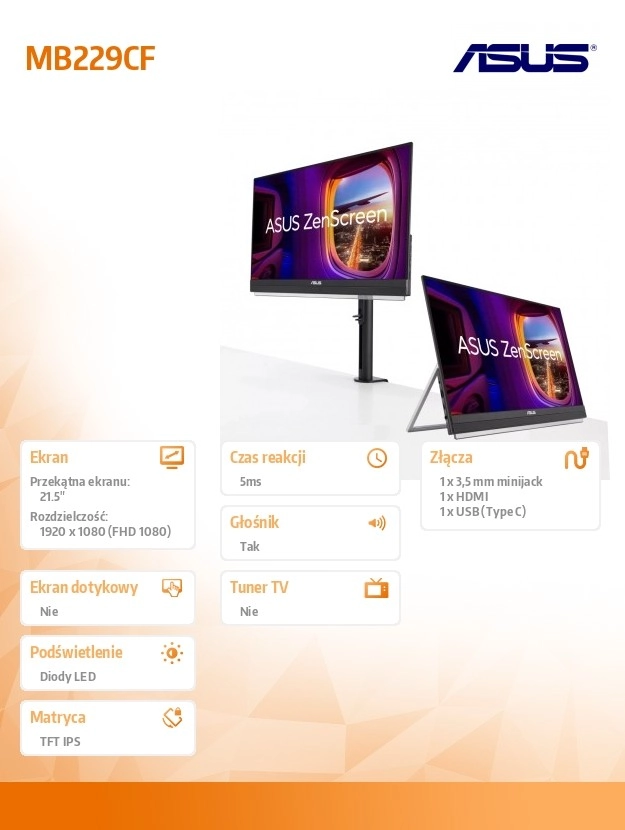 Kompaktowy monitor 21,5" idealny do codziennej pracy i rozrywki. Oferuje ostry obraz, cienkie ramki oraz ergonomiczne ustawienia dla komfortowego oglądania. Świetne rozwiązanie dla oszczędności miejsca na biurku i efektywnej pracy w biurze i w domu.