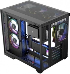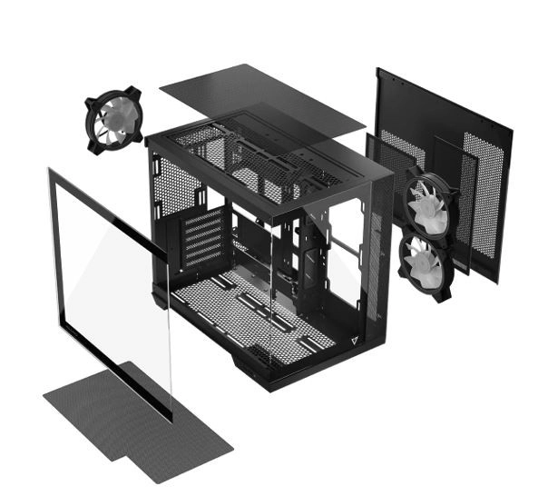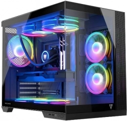 Volcano Panorama Apex ARGB Midi została zaprojektowana tak, aby sprostać potrzebom nowoczesnych entuzjastów składania PC. Dzięki przeszklonemu panelowi z hartowanego szkła efektownie wyeksponujesz swoje podzespoły, a dwukomorowa konstrukcja zapewnia separację zasilania i właściwe prowadzenie kabli.