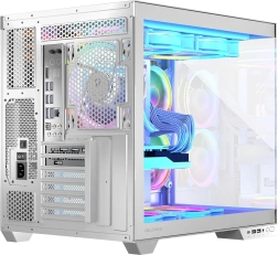 Volcano Panorama to dwukomorowa konstrukcja, która oddziela część serwisową z pionowo zamontowanym zasilaczem od głównej części komputera, w której montowana jest płyta główna i komponenty. Dzięki temu najważniejsze podzespoły dla graczy są jeszcze lepiej wyeksponowane.