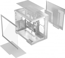 Chassis jest przygotowane na wydajne chłodzenie: zmieści się tu chłodzenie CPU do 175 mm, GPU do 400 mm oraz chłodzenie wodne z chłodnicami 360 mm na górze i na dole. W zestawie znajdziesz kontroler ARGB dla nawet 9 wentylatorów oraz praktyczne akcesoria (śrubokręt, ściereczkę czyszczącą i pudełko na śrubki). Dzięki bezśrubowym zatrzaskom łatwo zdejmiesz boczne panele, a dodanie komponentów to kwestia chwili.
