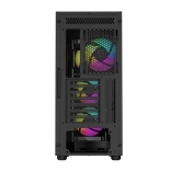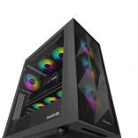 Trzy przednie intake i jeden tylny exhaust zapewniają dodatnie ciśnienie i świetne temperatury nawet pod obciążeniem. Podświetlenie ARGB można zsynchronizować przez płytę główną.