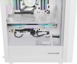GENESIS Diaxid 605 ARGB łączy wysoką wydajność chłodzenia z eleganckim designem. Trzy przednie i jeden tylny 120 mm wentylator ARGB tworzą dodatnie ciśnienie, a wraz z filtrami przeciwkurzowymi trzymają zanieczyszczenia z dala od komponentów. Drobny przedni panel mesh (~0,8 mm) zwiększa skuteczność filtracji i przepływu powietrza.