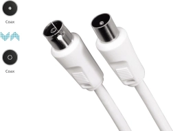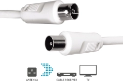 Niezawodny koncentryczny kabel antenowy o długości 5 m do podłączenia telewizora do gniazda antenowego lub telewizji kablowej. Dzięki podwójnemu ekranowaniu (folia aluminiowa + oplot) zapewnia stabilną transmisję bez zakłóceń, impedancję 75 Ω oraz wysoką jakość wykonania z wytrzymałym płaszczem PVC i smukłymi, wzmocnionymi złączami dla wygodnego użytkowania.