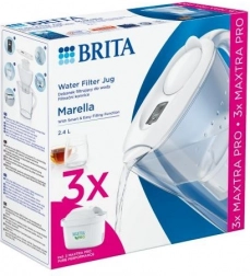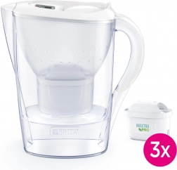 Dzbanek BRITA Marella o pojemności 2,4 l dostarcza ok. 1,4 l przefiltrowanej wody na jedno napełnienie. Smukły kształt pozwala wstawić go do półki na drzwiach lodówki, pokrywka z uchylną klapką umożliwia napełnianie jedną ręką, a wskaźnik BRITA Memo przypomina o wymianie wkładu co 4 tygodnie. Większość części można myć w zmywarce (z wyjątkiem pokrywki z elektroniką).