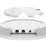 Bezpieczeństwo wzmacniają WPA3, nawet 24 odseparowane SSID, logowanie przez SMS/Voucher oraz wykrywanie nieautoryzowanych AP. Elegancka i cienka okrągła obudowa (ok. 220 × 32,5 mm) idealnie nadaje się do montażu sufitowego lub ściennego i zapewnia efektywne odprowadzanie ciepła.
