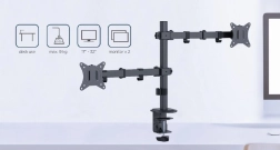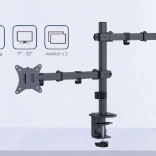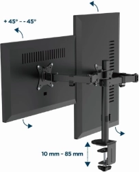 Ten podwójny uchwyt monitora jest idealny do każdego biurka. Umożliwia łatwe ustawianie ekranów pomiędzy 17" a 32", z maksymalnym obciążeniem 9 kg na monitor. Konstrukcja uchwytu zapewnia, że Twoje ekrany będą stabilne i bezpiecznie zamocowane. Jest kompatybilny ze standardem VESA (100 x 100 mm i 75 x 75 mm), co gwarantuje szeroką kompatybilność z różnymi monitorami.