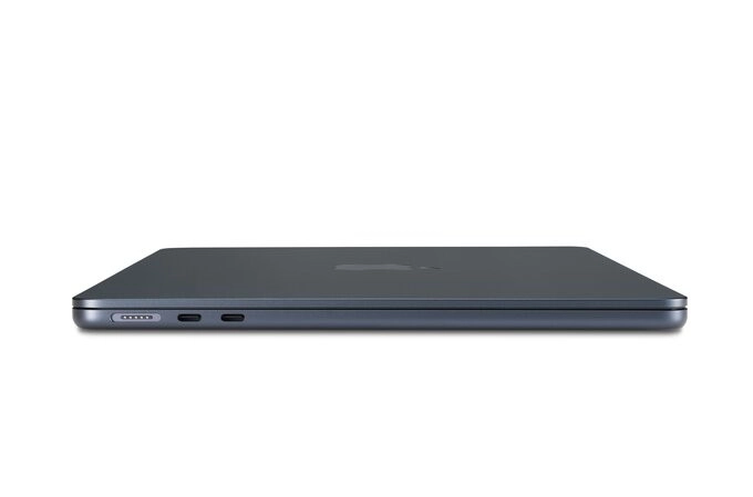 Cienka konstrukcja umożliwia pełne zamknięcie MacBooka Air 15" przy założonej folii, z wycięciem na kamerę.