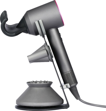 Utrzymuj swoją suszarkę DYSON Supersonic i akcesoria elegancko uporządkowane. Ten metalowy stojak z precyzyjnie uformowaną głowicą i magnetycznym mocowaniem zapewnia stabilną bazę do bezpiecznego odkładania i szybkiego użycia. Elementy silikonowe chronią powierzchnię suszarki i stojaka.