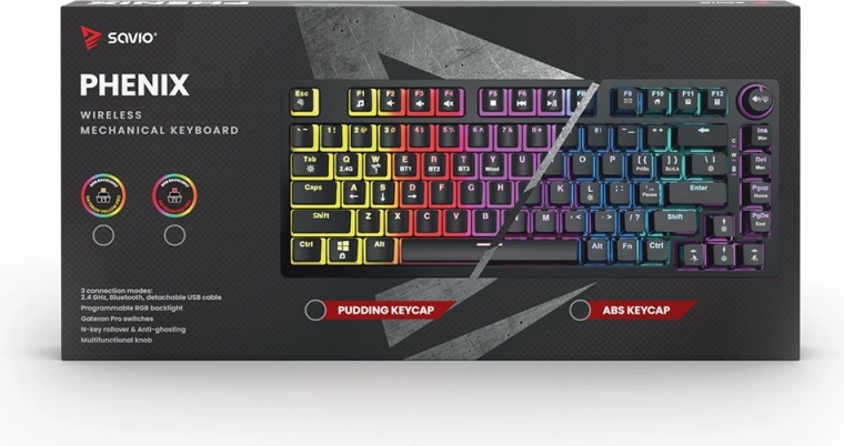 Bezprzewodowa mechaniczna klawiatura Phenix oferuje wszechstronną łączność na trzy sposoby: przez łączność bezprzewodową 2.4 GHz, Bluetooth oraz przewodowo przez USB. To idealne rozwiązanie dla osób, które preferują mniej kabli i elastyczność w doborze sposobu połączenia. Połączenie 2.4 GHz jest szybkie i stabilne, zapewniając minimalne opóźnienia.