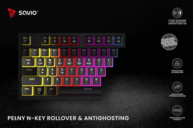 Klawiatura Phenix od Savio jest wyposażona w pełny N-key rollover i anti-ghosting. Oznacza to, że każde jednoczesne naciśnięcie wielu klawiszy jest poprawnie rejestrowane, co jest kluczowe dla graczy podczas intensywnych sesji.