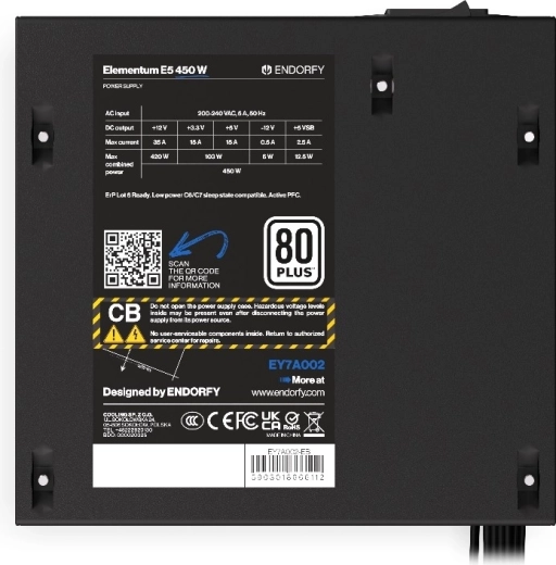 Zasilacz Elementum E5 450 W to niezawodna i wydajna jednostka zasilająca, która zapewnia bezpieczeństwo i stabilność Twojemu komputerowi. Ten zasilacz posiada certyfikat 80 PLUS, co gwarantuje wysoką efektywność w przetwarzaniu energii elektrycznej na użyteczną moc.