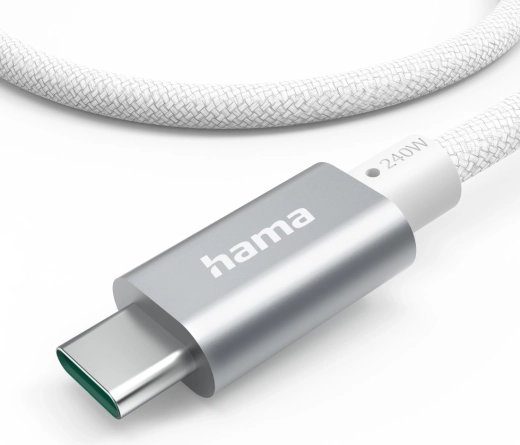 Uniwersalny kabel Hama USB‑C/USB‑C o mocy do 240 W zapewnia błyskawiczne ładowanie telefonów, tabletów i laptopów. Wspiera Power Delivery 3.1 (EPR) oraz Qualcomm Quick Charge 4.0+ dla maksymalnej szybkości, przesyła dane z prędkością do 10 Gbit/s, a dzięki plecionemu nylonowemu oplotowi i aluminiowym złączom jest wyjątkowo odporny na zginanie i plątanie.