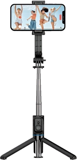 Selfie stick tripod X49 łączy estetykę i funkcjonalność: wytrzymała konstrukcja ze stabilną trójnożną podstawą oraz głowicą z możliwością precyzyjnego ustawienia pion/poziom gwarantuje ostre ujęcia bez drgań. Odłączany pilot Bluetooth umożliwia robienie zdjęć i nagrywanie z dystansu – idealny na samotne wyprawy i grupowe fotografie bez samowyzwalacza.