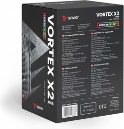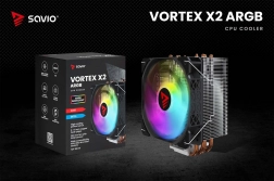 Chłodzenie procesora Savio Vortex X2 ARGB to idealny wybór dla osób szukających wydajnego i stylowego rozwiązania chłodzenia do swojego komputera. Cztery miedziane heatpipe’y o średnicy 6 mm oraz wentylator 120 mm pozwalają na chłodzenie procesorów o TDP do 180 W.