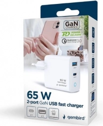 Uniwersalna, 2‑portowa ładowarka o mocy 65 W niezawodnie uzupełni energię w Twoich telefonach, słuchawkach i ultrabookach. Nowoczesna technologia GaN zapewnia wysoką sprawność, mniejsze nagrzewanie i kompaktowe wymiary, dzięki czemu ładowarka z łatwością mieści się w kieszeni lub torbie podróżnej.