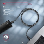 Kabel AXAGON USB-C – USB-C oferuje szerokie możliwości dzięki specyfikacji USB4 Gen 3x2 i pełnej kompatybilności z Thunderbolt 3. Został zaprojektowany do szybkiego transferu danych do 40 Gb/s, przesyłu obrazu w wysokiej rozdzielczości 8K oraz efektywnego ładowania urządzeń. Docenisz jego wyjątkową trwałość i elastyczność dzięki nylonowemu oplotowi.