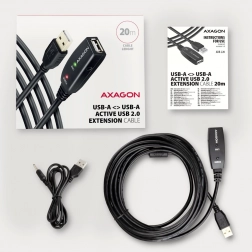 Aktywny przedłużacz USB 2.0 Axagon o długości 20 metrów służy do wydłużenia połączenia USB między komputerem a urządzeniami takimi jak mysz, klawiatura, kamera internetowa, drukarka lub skaner. Kabel zawiera zintegrowany repeater, który wzmacnia przesyłany sygnał, co pozwala na użycie kabla na większe odległości.