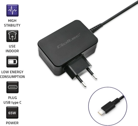 Ta wydajna ładowarka sieciowa o mocy 65 W automatycznie rozpoznaje podłączone urządzenie i dzięki Power Delivery (PD) precyzyjnie dopasowuje napięcie oraz prąd, aby ładować jak najszybciej i jednocześnie w sposób bezpieczny. Wsparcie Qualcomm Quick Charge (QC) znacząco skraca czas ładowania w porównaniu ze standardowymi ładowarkami.