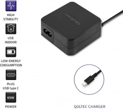 Ten wydajny zasilacz sieciowy z interfejsem USB‑C dostarcza do 65 W i wspiera Power Delivery (PD) dla szybkiego i łagodnego ładowania. Automatycznie negocjuje optymalny profil, dzięki czemu bezpiecznie zasila nowoczesne laptopy (MacBook, HP/Compaq, ASUS, ACER, IBM/Lenovo, wybrane HUAWEI), a także telefony, tablety, słuchawki, głośniki czy GPS.