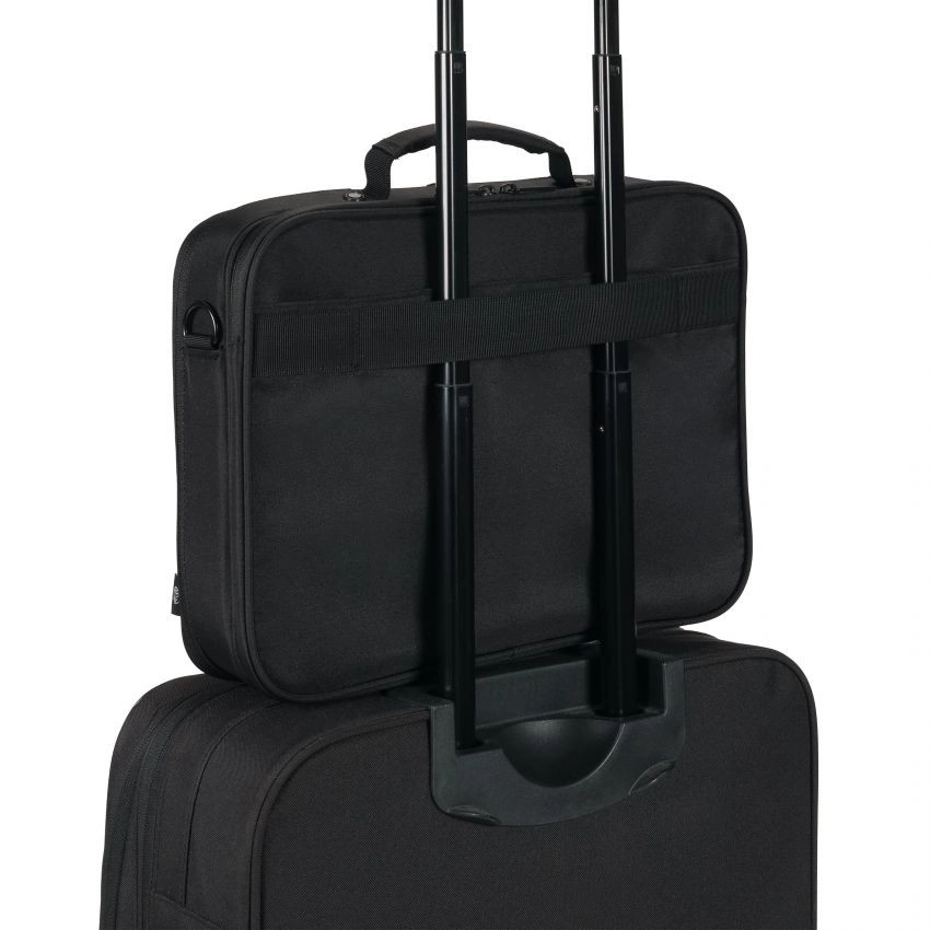 Sprytne wyposażenie ułatwia organizację w podróży i w biurze. Przedni organizer jest dostosowany do akcesoriów mobilnych, osobna kieszeń pomieści zasilacz i kable, z tyłu znajduje się kieszeń na dokumenty. Dla większego bezpieczeństwa docenisz kieszeń zapinaną na zamek z ochroną RFID oraz ukrytą przegrodę na lokalizator GPS. Dzięki wodoodpornemu materiałowi, wyściełanemu paskowi na ramię i paskowi do mocowania na walizce podróżowanie jest wygodne i bezproblemowe.
