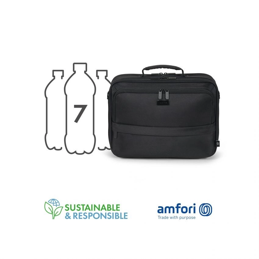 Elegancka i ekologiczna torba na laptop dla rozmiarów 15–17,3" z kolekcji ECO od DICOTA. Wykonana z przetworzonego PET, oferuje wyściełaną, zamykaną przegrodę, wodoodporny materiał oraz przemyślaną organizację akcesoriów. Nie brakuje kieszeni RFID, ukrytej przegrody na lokalizator GPS, paska na trolley i wygodnego, wyściełanego paska na ramię.