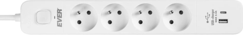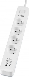 Chroń swój dom i biuro dzięki listwie przeciwprzepięciowej EVER Protect z czterema uziemionymi gniazdami i dwoma portami USB (USB‑A + USB‑C). Dzięki zintegrowanej szybkie ładowarce o mocy do 3,4 A łatwo naładujesz smartfony, tablety i smartwatche. Bezpieczną pracę zapewniają ochrona przeciwprzepięciowa, zabezpieczenie przed dziećmi, dwubiegunowy wyłącznik oraz wskaźnik LED stanu ochrony.