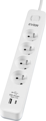 Listwa przeciwprzepięciowa EVER Protect została zaprojektowana do niezawodnej ochrony wrażliwej elektroniki w domu i biurze – od komputerów stacjonarnych i laptopów przez peryferia po telewizory i urządzenia multimedialne. Cztery uziemione gniazda uzupełniają dwa porty USB (USB‑A i USB‑C) z szybkim ładowaniem do 3,4 A, dzięki czemu oszczędzasz miejsce i gniazdka.